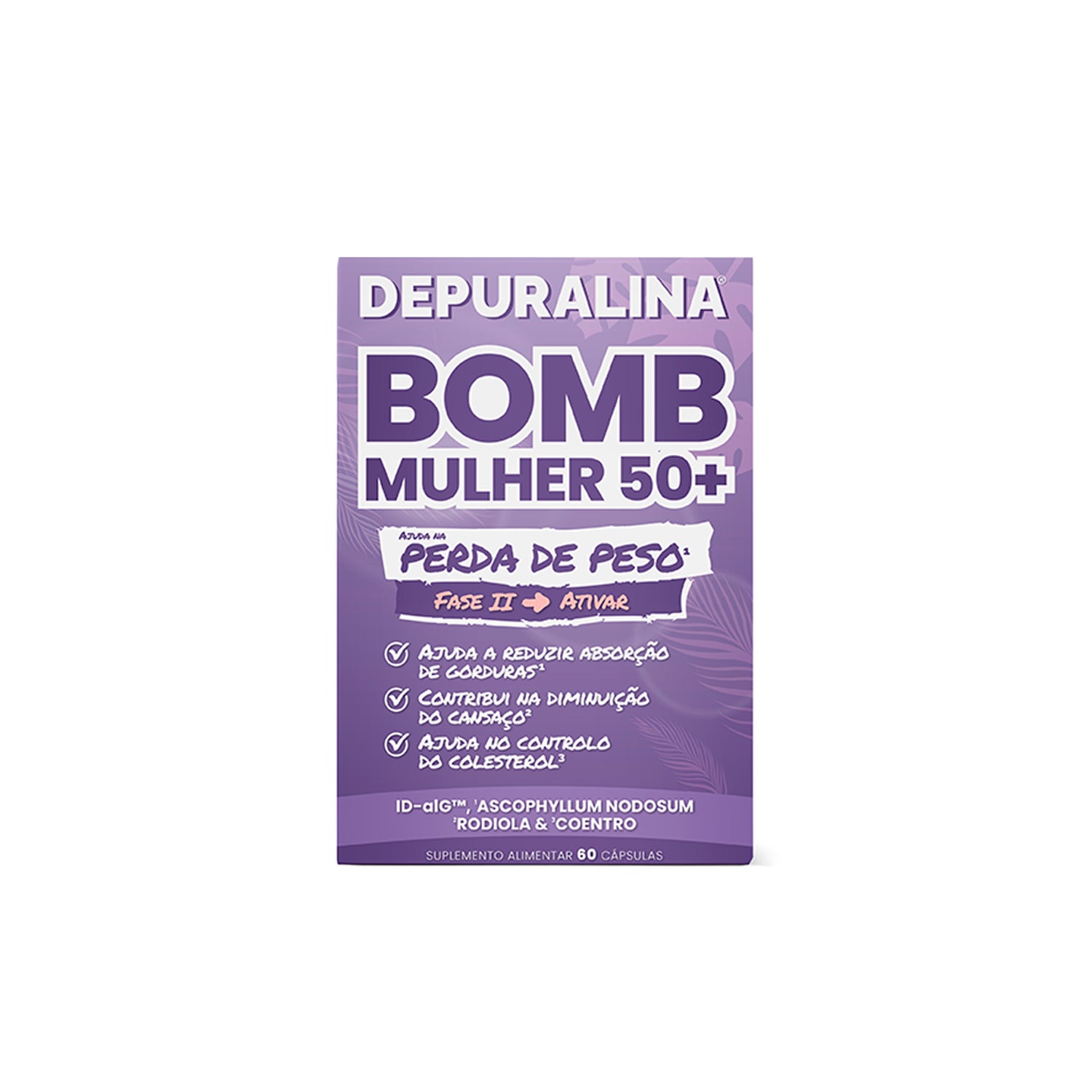 Depuralina Bomb Mulher 50+ é um suplemento alimentar projetado para apoiar a redução da absorção de gorduras e favorecer a queima de gorduras em excesso, o que pode facilitar a perda de peso.
