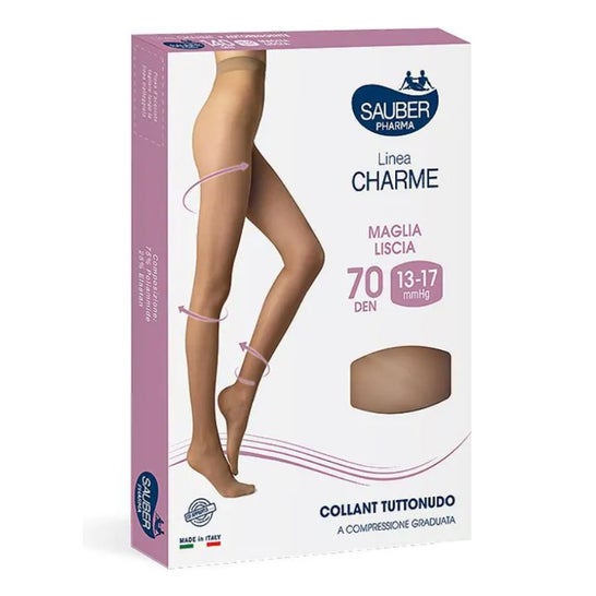 Desa Pharma Sauber Charme Pantimedia Liso Médio Tamanho 5 1ud são meias de compressão leve, projetadas para oferecer conforto e elegância às pernas. São ideais para quem necessita de um apoio suave e um acabamento liso que realça a beleza natural.