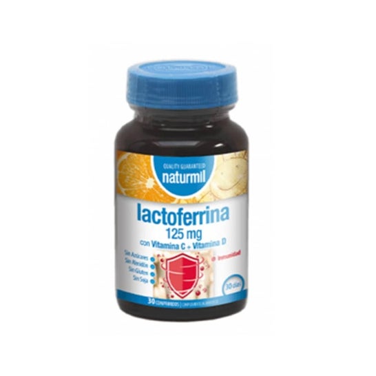 DietMed Naturmil Lactoferrina 125mg 30comp é um complemento alimentar que contribui para manter o sistema imunológico e proteger as células do dano oxidativo.