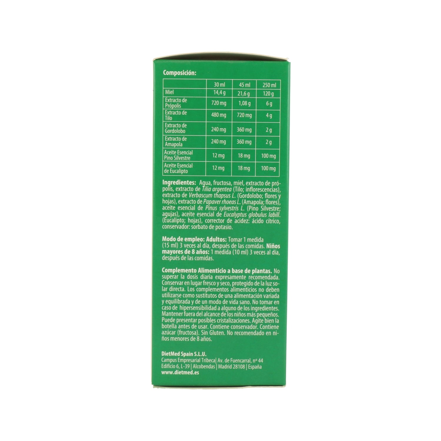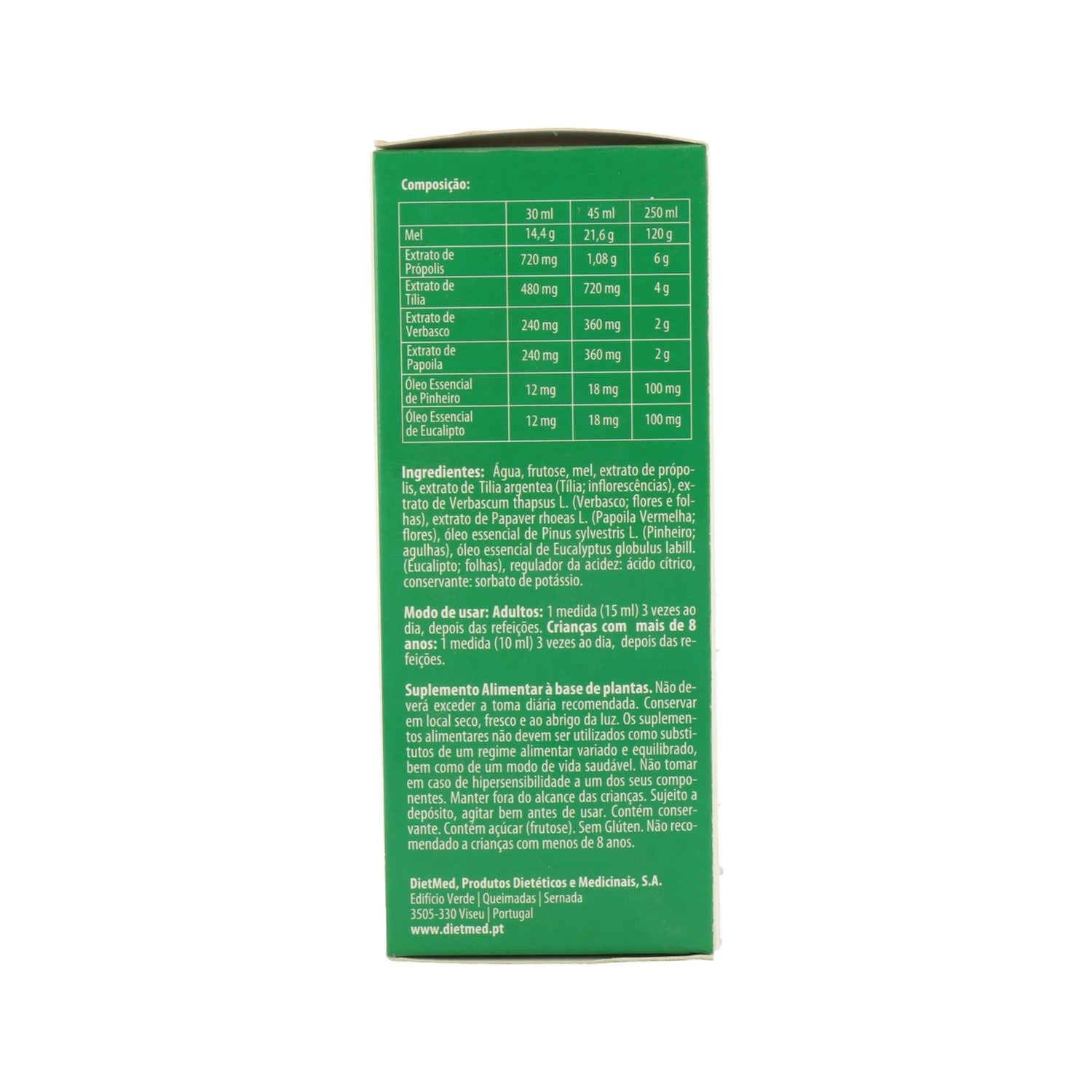 Xarope à base de eucalipto, mel, óleo essencial de pinheiro e própolis com propriedades expectorantes. Ideal para tomar durante os meses mais frios para reduzir o risco de sofrer de constipações ou gripes ou para aliviar sintomas como a tosse ou o muco. Tem também um efeito anti-sético, reduzindo as bactérias nas membranas mucosas.