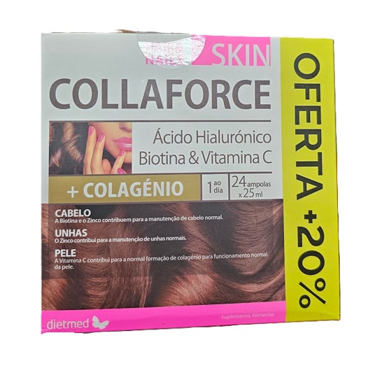 Dietmed Skin Piel Cabelo Unhas 24amp é um complemento alimentar em formato ampola à base de ingredientes naturais que contribuem para a manutenção da pele, cabelo e unhas em condições normais.