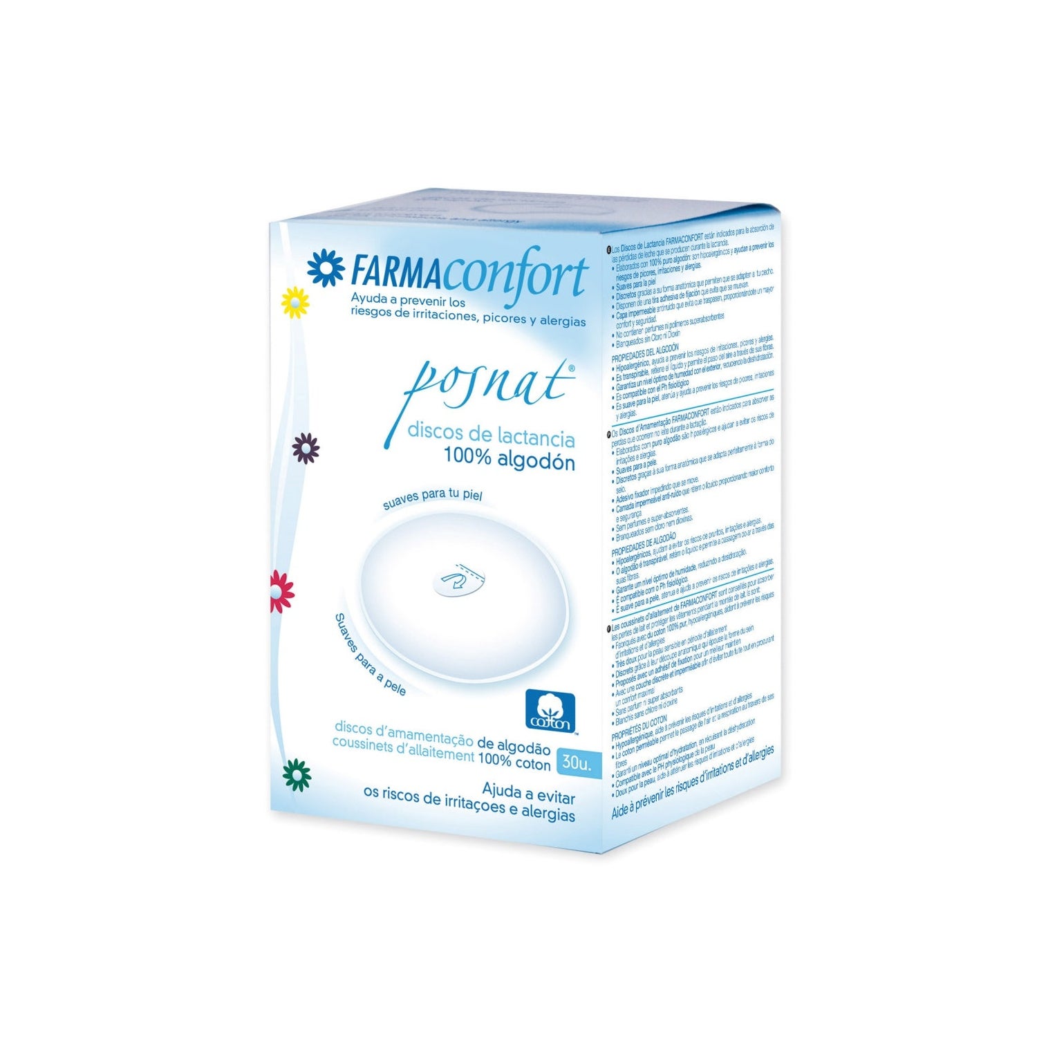 Os absorventes Farmaconfort 100% algodão absorvem as pequenas perdas de leite que ocorrem durante o período de lactação. Protege e garante o máximo cuidado na zona do peito, evitando o atrito e a irritação.