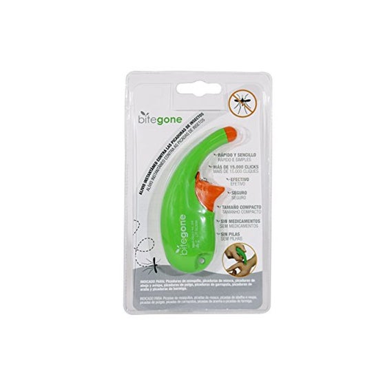 Bitegone Dispositivo Picaduras é um dispositivo médico que contribui para aliviar a coceira de picadas de insetos, acalmando a inflamação e irritação da pele.