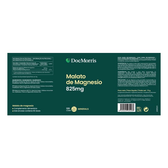DocMorris Magnésio Malato 120 Comp é um suplemento alimentar que se apresenta em forma de comprimidos e está formulado a partir de malato de magnésio de alta biodisponibilidade. O magnésio contribui para a redução do cansaço e da fadiga.