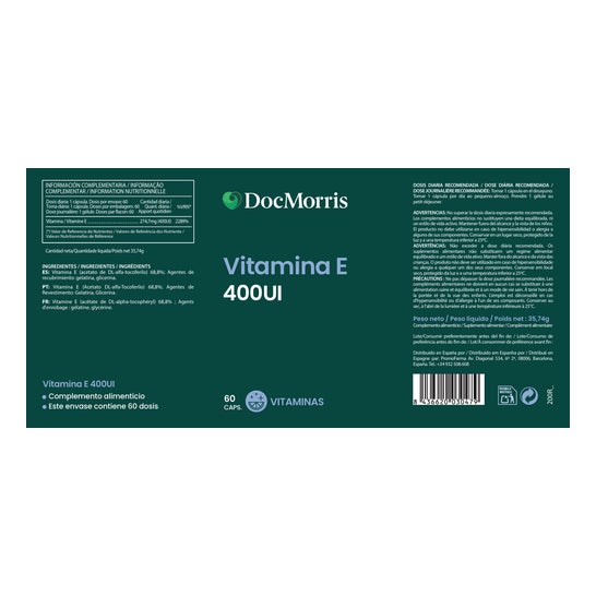 DocMorris Vitamina E 100mcg 400ui 60cáps é um complemento alimentar que fornece vitamina E na forma de Acetato DL-alfa-Tocoferilo.