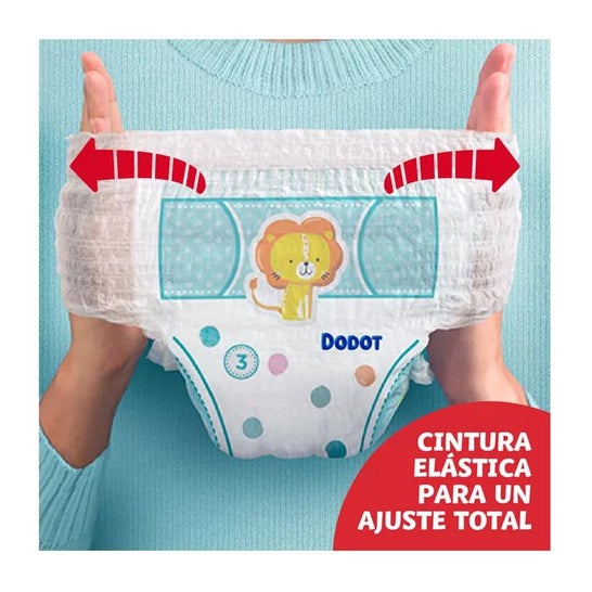 Fraldas pants da dodot, produto destinado a bebés com peso entre 9 e 15kg. O produto foi concebido com uma tecnologia respirável que manterá os mais pequenos até 12 horas secos. O design apresenta um ajuste perfeito ao corpo do bebé, para que não caiam enquanto correm ou brincam, garantindo a fixação na zona. Produto de aplicação fácil e rápida, coloca-se como se fosse uma calça normal e são muito fáceis de retirar, pois basta rasgar os lados da fralda. O design proporciona canais de ar que criam espaços para que o ar circule livremente dentro da fralda, facilitando a transpiração e a secura. Tamanho 4 para bebés de 9 a 15 kg.