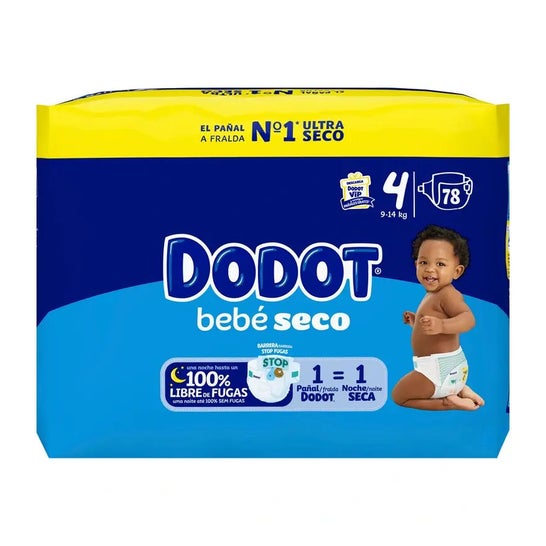 Nappies para bebés de 9-14 kg. Ajudam a manter o bebé seco, absorvendo líquido durante até 12 horas e evitando fugas para o pano ou colchão. São concebidos com uma camada extra para uma maior eficácia das fraldas.