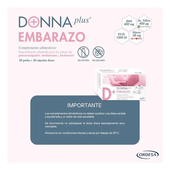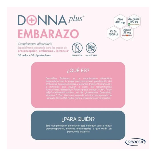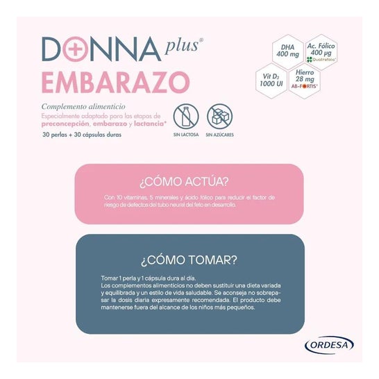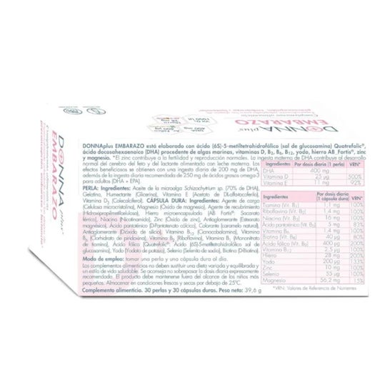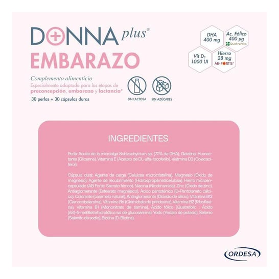 DonnaPlus+ Gravidez 30 Pérolas + 30 Cápsulas Duras é um suplemento alimentar pensado para oferecer às grávidas um alto conteúdo em DHA, ácido fólico, ferro aminoquelado e outras vitaminas e minerais.