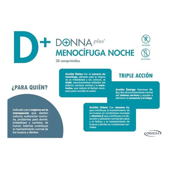Contribui para regular alterações do estado de ânimo e do ciclo de sono, estresse ou irritabilidade. Ao mesmo tempo, favorece o bom funcionamento do sistema nervoso e reduz a fadiga, graças à sua fórmula com cimicifuga racemosa, melatonina, GABA e vitaminas K2, B6, B9, B12 e D3. Não contém glúten, lactose nem sacarose.