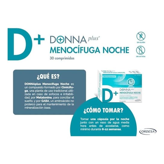 DonnaPlus+ Menocífuga Noite 30comp é um complemento alimentar para o bem-estar da mulher, especialmente durante a transição para a menopausa.