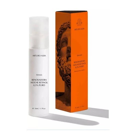 Fórmula Dr. Arthouros Alba: Retexturizante Nocturno Retexturizante Puro Retinol 0,5% 50ml é um creme noturno retexturizante anti-envelhecimento com retinol puro 0,5%. A sua fórmula também contém ingredientes activos calmantes e renovadores que ajudam a minimizar a acção irritante do retinol concentrado como o bisabolol, alantoína, extractos de plantas calmantes e ácidos gordos ómega 3, 6 e 9.