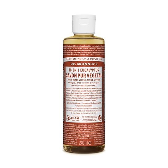 Dr. Bronners Sav Liq Eucalyp 240ml é um sabonete líquido ideal para uma limpeza natural e eficaz no cuidado diário do corpo. Formulado com óleos orgânicos certificados e essência pura de eucalipto, proporciona uma experiência refrescante e revitalizante para a higiene da pele, sendo uma opção consciente e respeitosa com o meio ambiente.