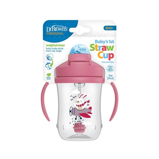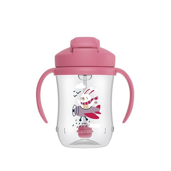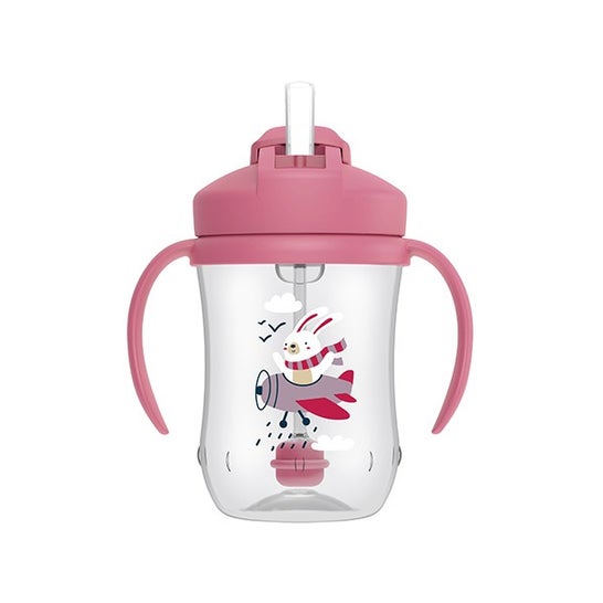 Dr Brown's Meu Primeiro Copo com Canudo Coelhinho Rosa +6m 270ml é um copo perfeito para impedir que os bebês se sujem enquanto bebem.