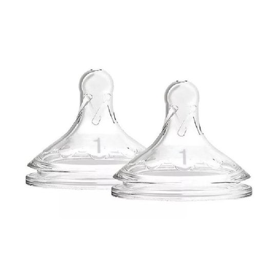 Tetina médica de silicone com desenho de boca larga adequada para alimentar os bebés desde o nascimento. Tem perfurações laser que permitem um ritmo exacto e cronometrado de gotas por segundo. Ajuda ao desenvolvimento normal da boca e do paladar dos mais pequenos. Tem um toque suave e um desenho que imita o peito da mãe. Vem numa caixa com 2 unidades.