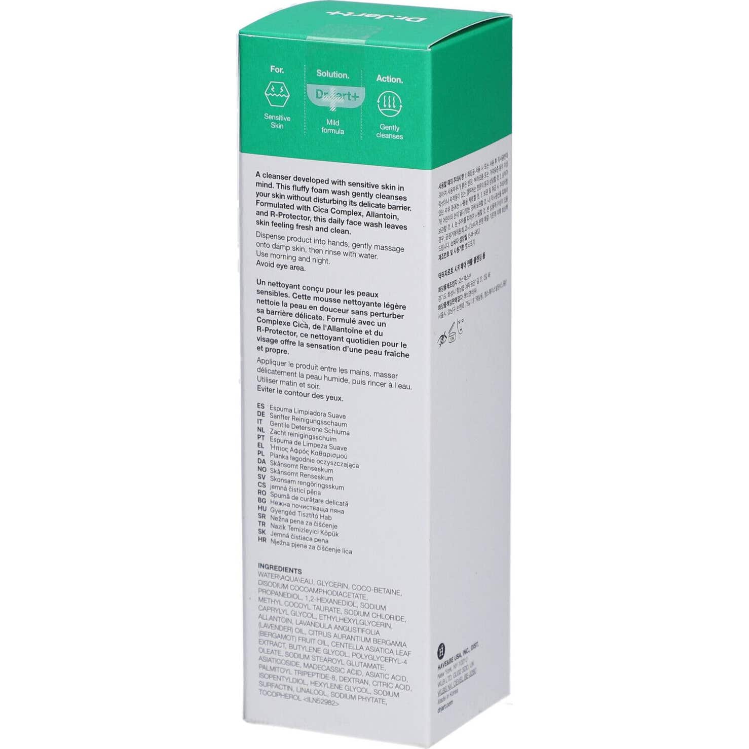 Dr.jart+ Cicapair Gentle Cleansing Foam é um limpador suave e espumoso que vem em uma embalagem de 150 ml. Este produto é formulado com extrato de Centella Asiática, conhecido por suas propriedades calmantes, o que ajuda a remover as impurezas da pele sem comprometer sua hidratação natural.