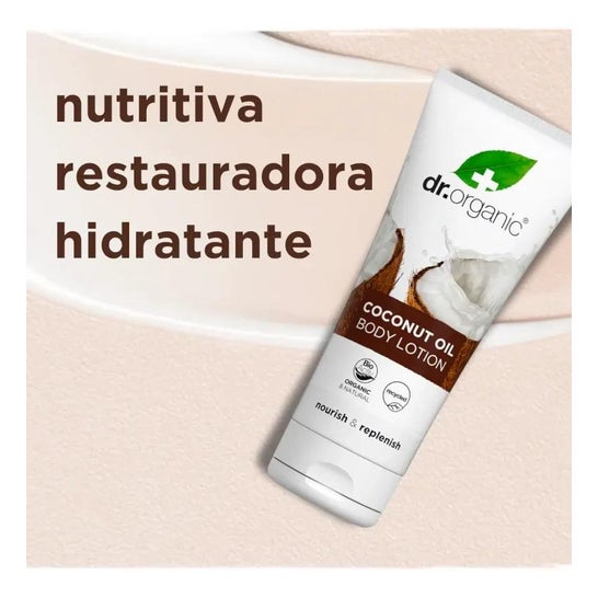 A loção corporal Dr Organic Organic Coconut Oil Body Lotion 200ml é rica em triglicéridos de cadeia média e proporciona propriedades nutritivas e hidratantes. Enriquecida com aloé vera, cera de abelha, óleo de abacate, manteiga de karité, óleo de amêndoa, ácido hialurónico e extractos de papaia, manga e figo. Esta mistura de ingredientes bioactivos restaura a hidratação e a nutrição da epiderme, deixando a pele perfeitamente equilibrada e rejuvenescida.