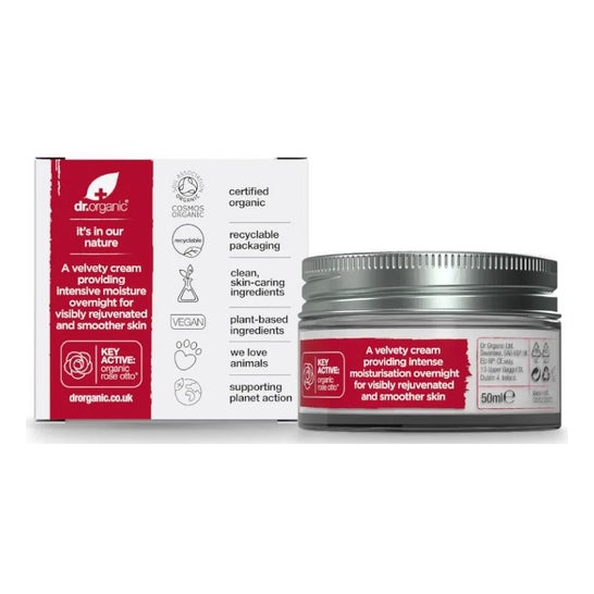 Creme de noite facial indicado para peles maduras, à base de óleo de rosa mosqueta, água de rosas, aloé vera, manteiga de karité, óleo de jojoba, passiflora, tília, camomila, calêndula e vitaminas C e E, e óleo essencial de gerânio e cravinho, que possui um poderoso efeito hidratante que ajuda a regenerar a pele e a reduzir as rugas. Produto vegan.