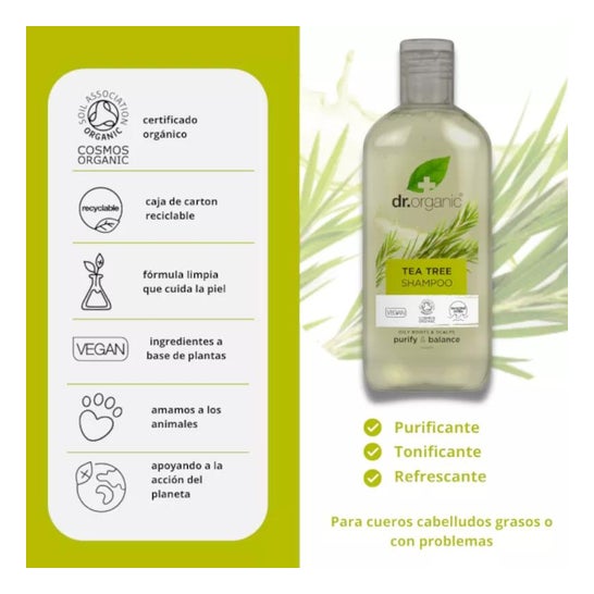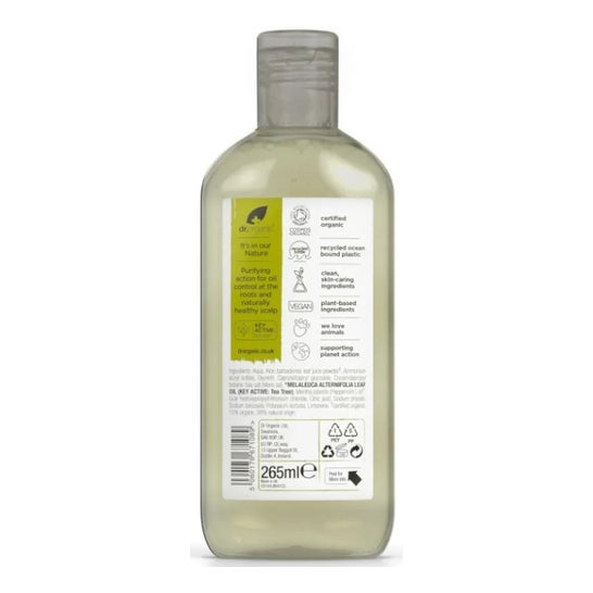 O Champô Dr Organic Tea Tree 265ml é rico em Terpinen-4-ol, um ingrediente ativo que lhe confere propriedades anti-sépticas. Enriquecido com aloé vera, este champô tem uma ação purificante e reparadora, que ajuda a aliviar a comichão e estimula o couro cabeludo. Particularmente indicado para cabelos e couro cabeludo oleosos e/ou com caspa.