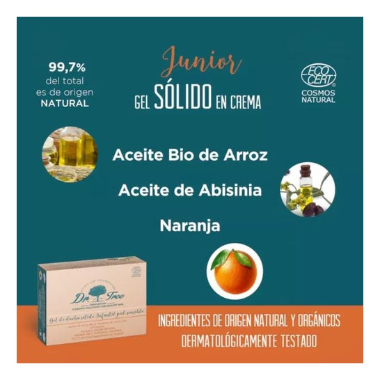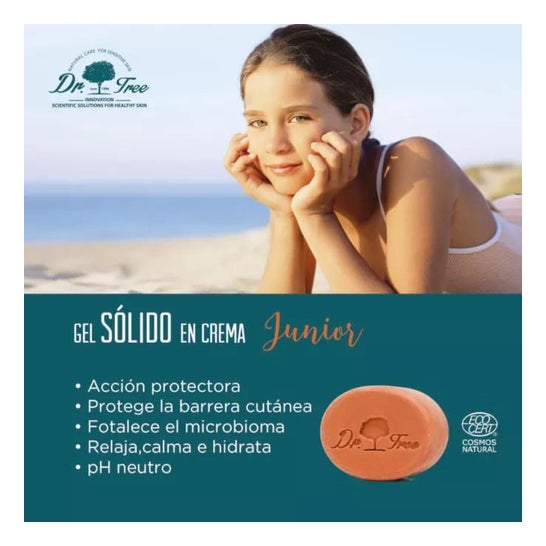Dr. Tree Junior Solid Shower Gel 75g é um gel de duchesólido que limpa, acalma, hidrata e protege, gerando uma espuma, macia, cremosa e delicada.