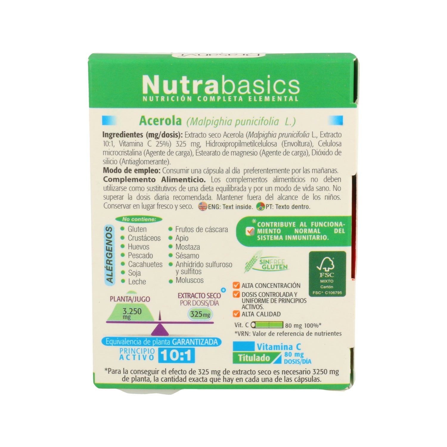 A acerola, conhecida como a cereja da Jamaica, é um fruto vermelho que se caracteriza pela sua riqueza em vitamina C. Concretamente, estas cápsulas aportam:
