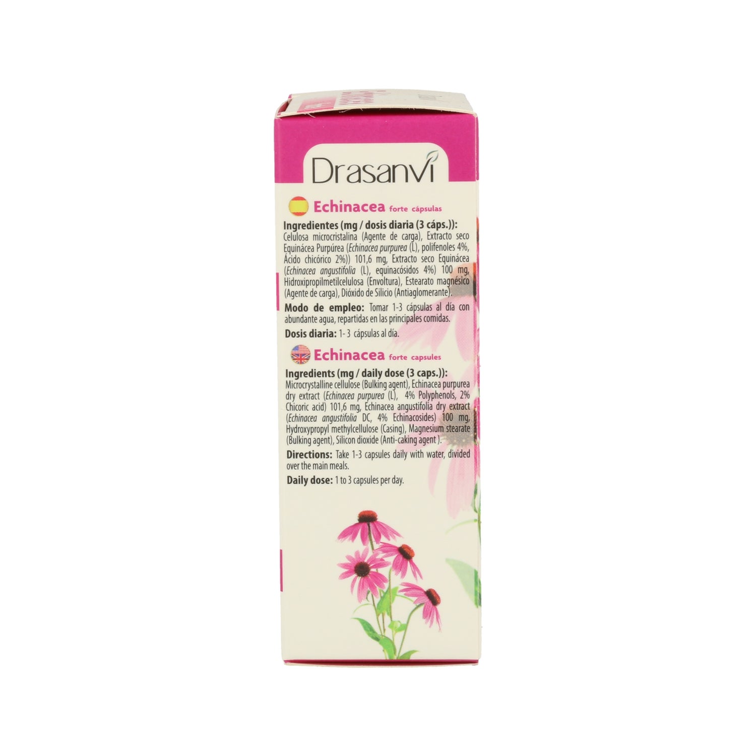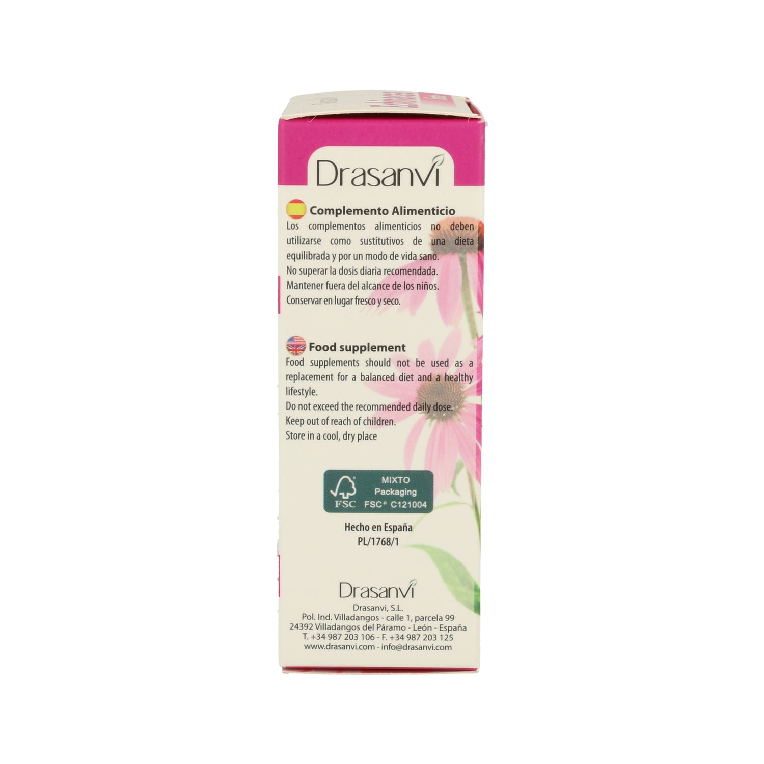 Suplemento alimentar feito a partir de Drasanvi Echinacea. Produto formulado a partir de uma mistura de duas espécies de equinácea: purpurea e angustifolia, ambas adicionadas sob a forma de extractos secos estandardizados. Eles fornecem 4% de polifenóis, 2% de ácido chicórico e 4% de equinácea.