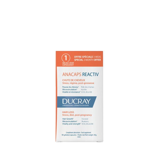 Ducray Anacaps Reactiv Conjunto de 90caps é um complemento alimentar que ajuda a melhorar a aparência das unhas e do cabelo. Trata-se de um conjunto que contém 3 caixas de 30 comprimidos cada uma.