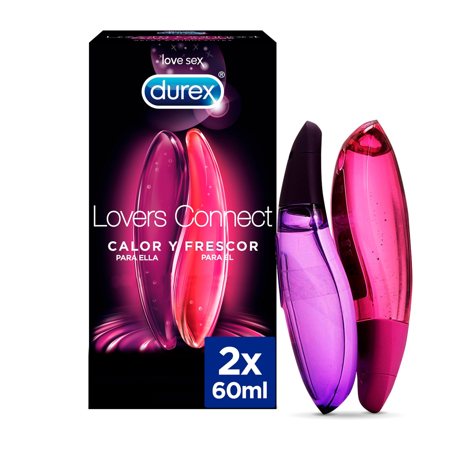 Durex® Lovers Connect é um gel íntimo que transmite inovação às relações sexuais conseguindo, assim, maximizar o prazer e multiplicar as sensações. Graças à sua fórmula estimulante, conseguirá combinar os efeitos de frio e de calor para o casal. Para ela: um gel estimulador que transmite uma sensação de calor na sua zona íntima. Para ele: este excitante gel dar-lhe-á uma sensação de frescura. Durante as relações sexuais consegue-se combinar ambos os efeitos de temperatura contrária, transmitindo um formigueiro especial que maximizará as sensações. Este gel estimulante não substitui os anticoncecionais. Contém Lubrificante com efeito de calor 60 ml e lubrificante com efeito de frio 60 ml da Durex.