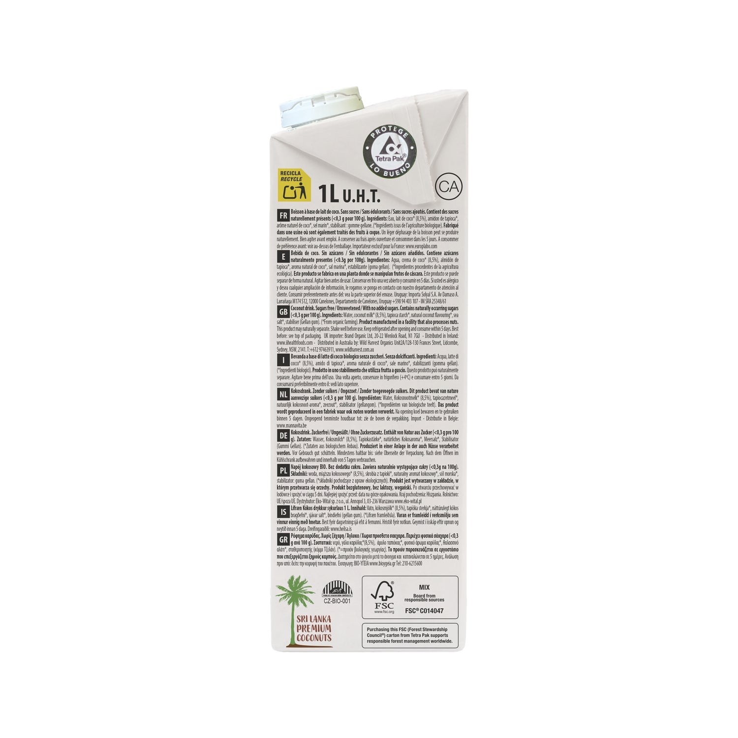 Leite de coco feito a partir de coco de cultivos orgânicos certificados, ideal para fazer bebidas vegetais, sobremesas e smoothies, substituindo o tradicional leite de vaca.