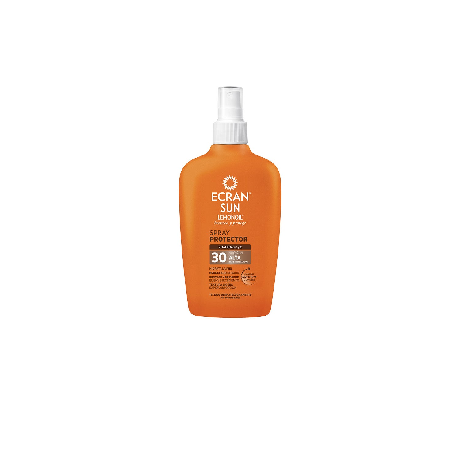 Ecran Sun Lemonoil Spray Protetor SPF30 protege ao longo do dia sob o sol.