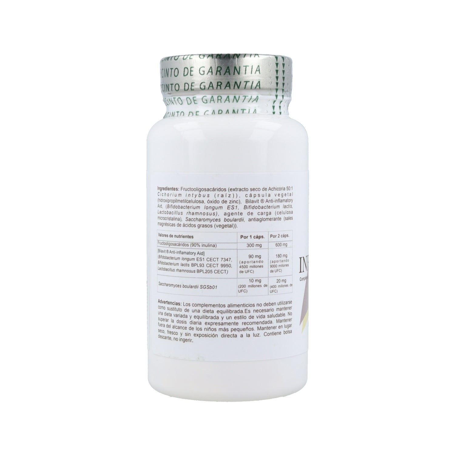 Suplemento alimentar em cápsulas, à base de inulina e de 4 estirpes de bifidobacterium, lactobacillus e saccharomyces, indicadas para apoiar e promover a saúde gastrointestinal e ajudar a manter a flora intestinal. Ajuda também a reforçar as defesas naturais do sistema imunitário e, graças à inulina, proporciona um potente efeito anti-inflamatório intestinal.