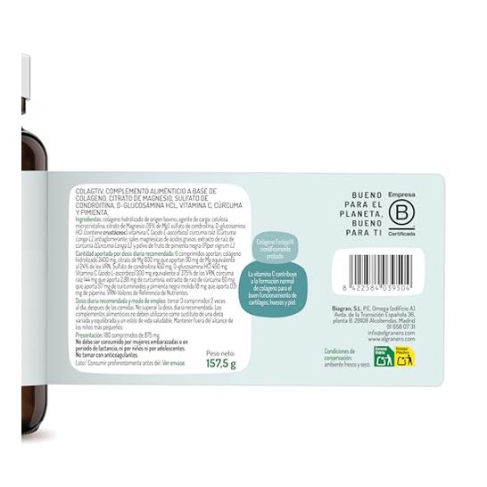 Suplemento alimentar em cápsulas com colagénio hidrolisado de origem bovina. É um componente proteico fibroso que contribui para uma boa saúde óssea, cardiovascular, intestinal e digestiva. Contém também vitamina C, que promove a formação normal de colagénio para o bom funcionamento da cartilagem e da pele, ajudando à sua recuperação, cura e elasticidade.