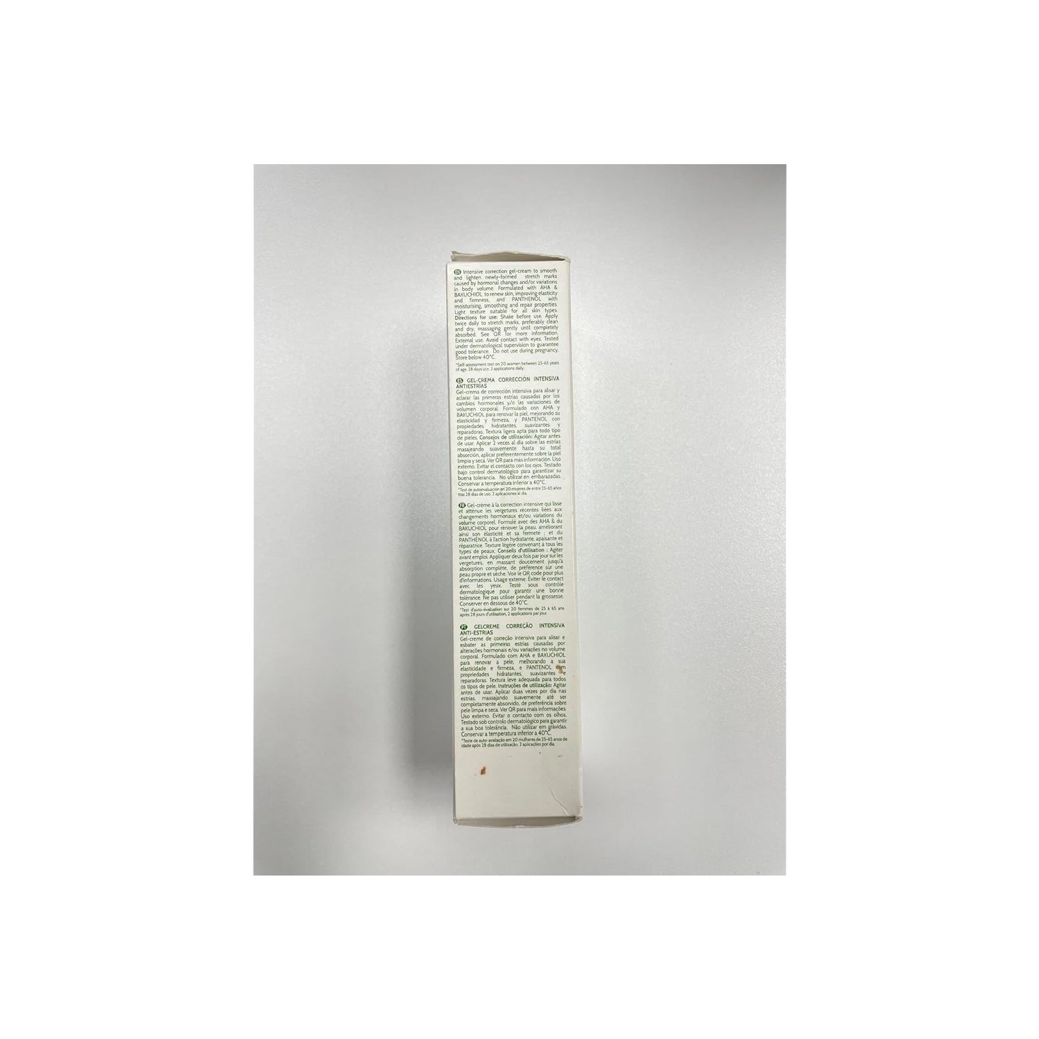 Tratamento de cuidado corporal em formato de gel que combina diferentes ingredientes activos que ajudam a manter a elasticidade da pele, impedem a formação de novas estrias e reduzem o aparecimento das estrias existentes. Tem propriedades hidratantes e elásticas que ajudam a melhorar a aparência da pele. Adequado para todos os tipos de pele.
