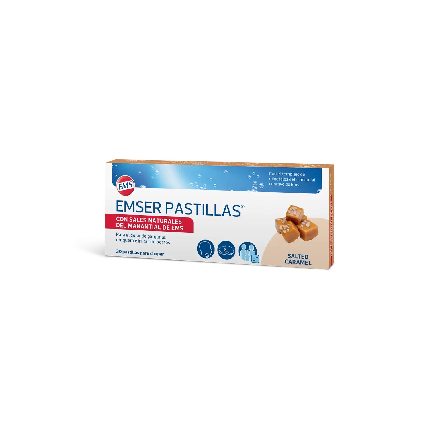 Emser Pastillas Caramelo Salado 30comp são pastilhas com sabor a caramelo salgado que ajudam a proteger e a limpar a garganta, aliviando a inflamação e a tosse. Contém 30 pastilhas.