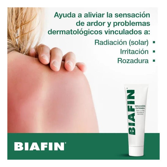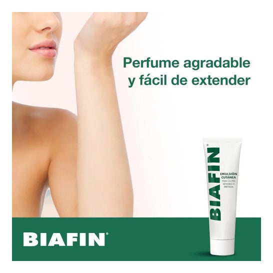 Biafin Skin Emulsion 50ml é um creme com propriedades hidratantes e emolientes que ajuda a reparar a pele sensível e irritada.