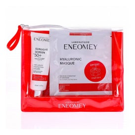 Eneomey Kit Solar Sunlight Screen Spf50 + Hyaluronic Mask é uma solução completa para o cuidado solar e a hidratação da pele. Este produto proporciona uma proteção eficaz contra os raios UV, graças ao seu sistema de filtragem que oferece uma fotoproteção contra os raios UVB e UVA.