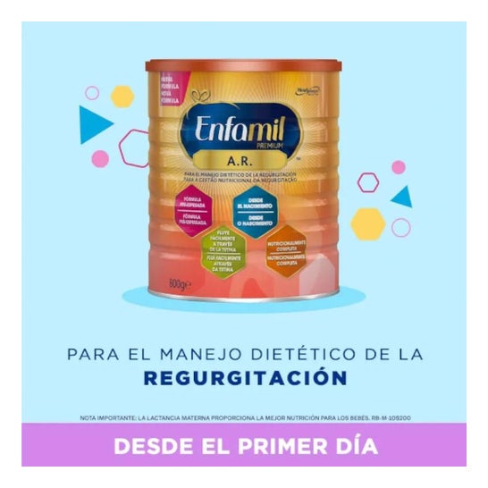 O leite para bebés Enfamil 1 AR é um leite anti-regurgitação adequado para bebés entre os 0 e os 6 meses de idade . a sua fórmula especial com espessante de amido de arroz permite que o leite permaneça líquido durante a alimentação, engrossando no estômago do bebé e evitando assim a regurgitação e o refluxo.