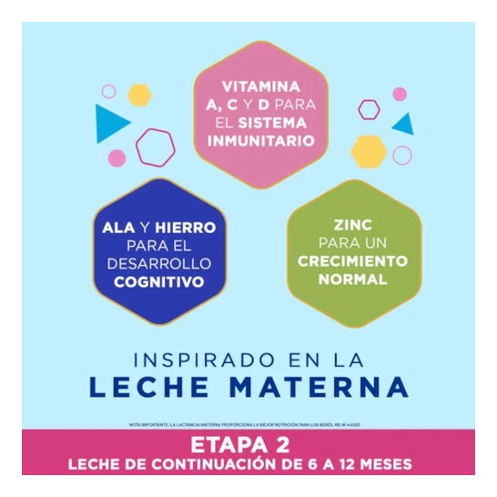 Contém Lipil, uma mistura especial e exclusiva de ácidos gordos com DHA e ARA (tipos específicos de ómega 3 e ómega 6) que favorecem o equilíbrio nutricional, o desenvolvimento, a formação da visão e o funcionamento do sistema imunitário, muito importante nos primeiros tempos de vida do bebé.