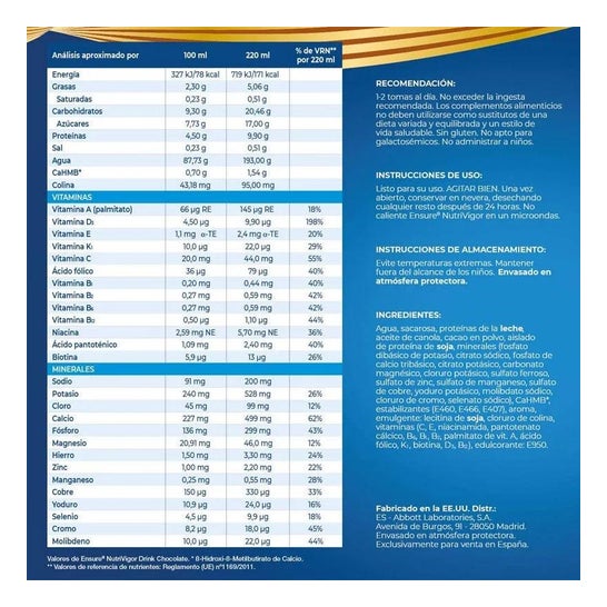 Recomenda-se tomar 1-2 doses por dia. Garanta que o Pack Nutrivigor de 4 frascos é apresentado pronto para uso. Agita bem. Uma vez aberto, guardar no frigorífico, descartando qualquer resíduo após 24 horas. Não use um microondas para aquecer Ensure Nutrivigor.