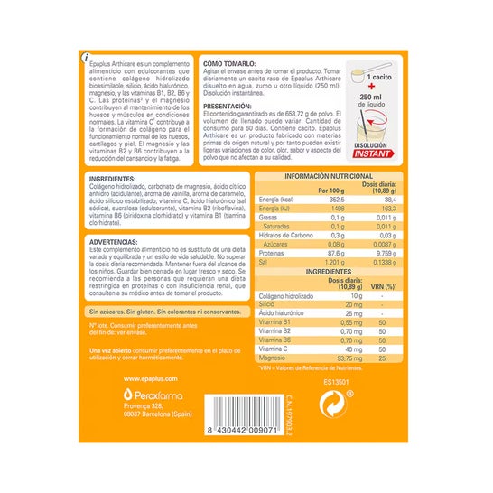 Suplemento alimentar à base de colágeno, silício, ácido hialurônico e magnésio, que contribui para o funcionamento normal dos ossos e articulações.