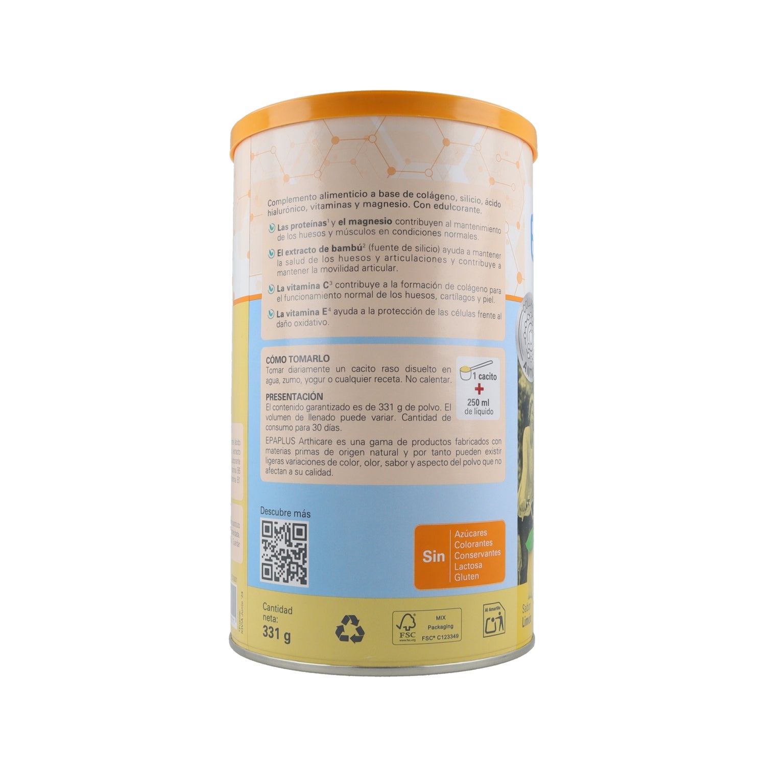 Epaplus Arthicare Articulações Colágeno Antiox Limão 331g é um complemento alimentar especialmente projetado para cuidar das articulações, à base de colágeno hidrolisado, silício (do extrato de bambu), ácido hialurônico, magnésio, vitamina C, vitamina E e vitaminas B1, B2 e B6.