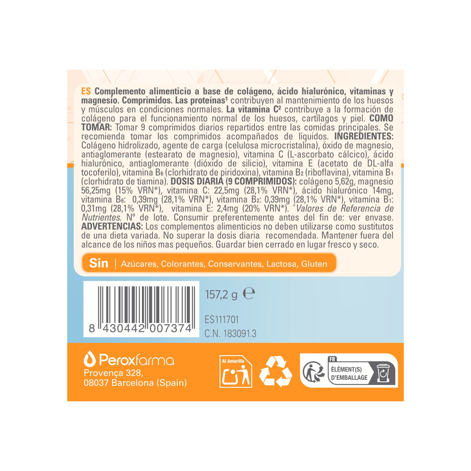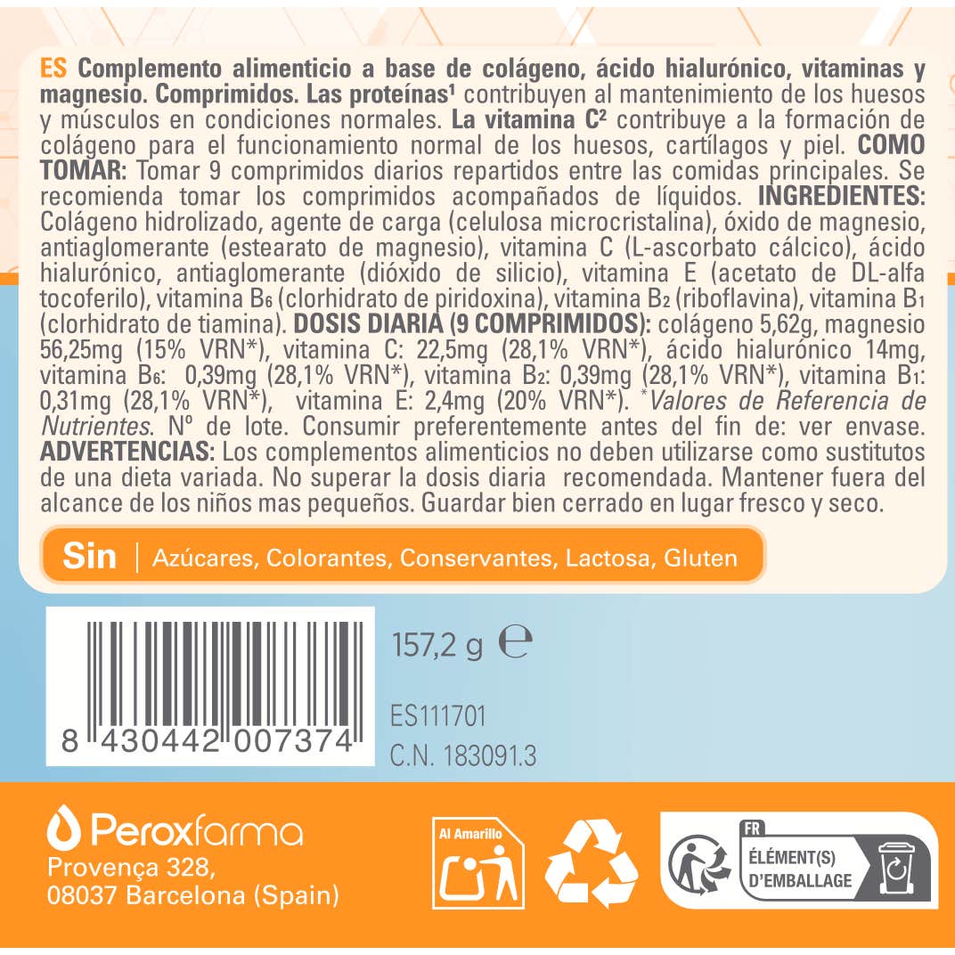 O magnésio é responsável pela síntese proteica e proporciona condições favoráveis ao bom funcionamento do sistema nervoso. O ácido hialurónico encontrado nas cartilagens articulares proporciona uma acção lubrificante nas articulações, ajudando a hidratar a pele. As vitaminas B1, B2 e B6 (Tiamina, Riboflavina e Piridoxina) contribuem para o metabolismo normal de proteínas como o colagénio e a vitamina C dá o seu poder antioxidante.