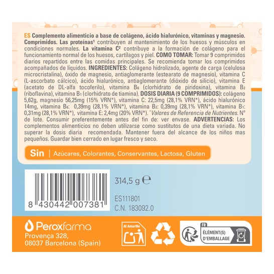 É feito de ácido hialurónico, que se encontra na cartilagem das articulações e proporciona uma acção lubrificante sobre elas, ao mesmo tempo que ajuda a hidratar a pele. As vitaminas B1, B2 e B6 (Tiamina, Riboflavina e Piridoxina) ajudam o metabolismo normal de proteínas como o colagénio e a Vitamina C proporciona o seu poder antioxidante