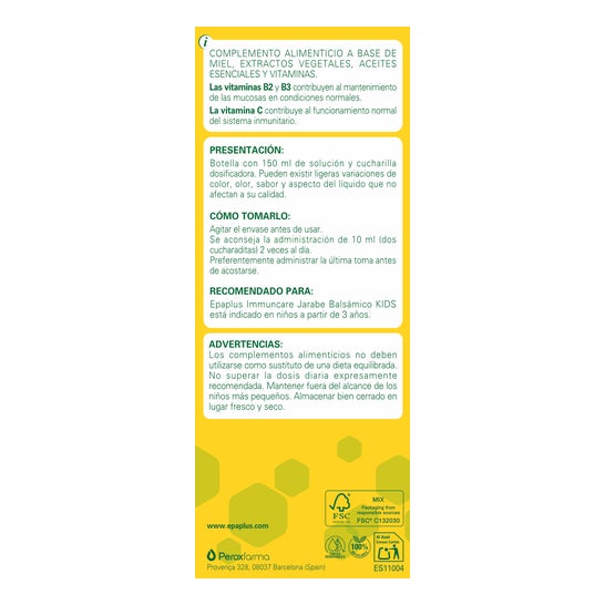 Epaplus Xarope Balsâmico Infantil 150ml xarope balsâmico com ingredientes naturais. Sua fórmula é à base de mel, acerola, vitamina C, vitamina C, vitamina B2 e vitamina B3. Ajuda a combater o resfriado com tosse e também tem efeito relaxante na garganta, faringe e cordões vocais.