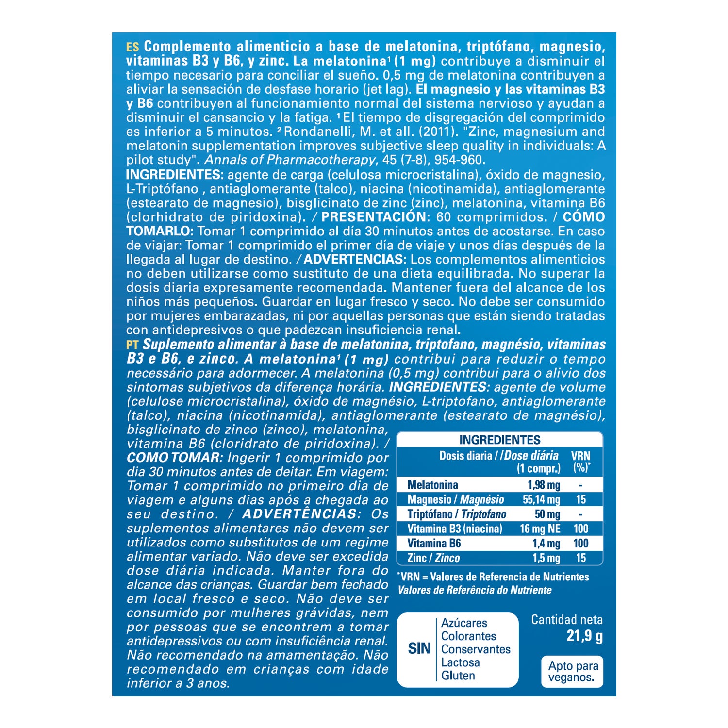 Feito a partir de melatonina, triptofano, magnésio, vitamina B3 e vitamina B6, contribui para a reconciliação do sono e alivia a sensação de jet lag durante a viagem.