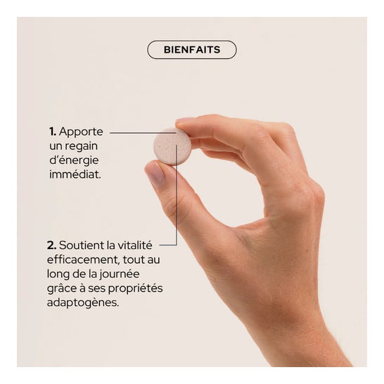 Comprimidos mastigáveis com sabor a morango-framboesa, embalados em bolsa de 30 comprimidos (Doypack). Apropriado para adultos, adolescentes (+12 anos) e crianças (+4 anos) em porções adaptadas. Fabricado na França.