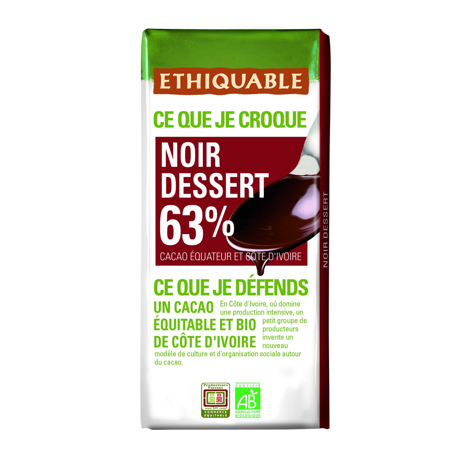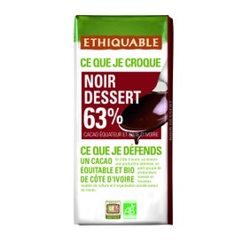 Chocolate biológico da Ethiquable que fornece vitaminas e é respeitoso com o meio ambiente. Uma barra de cacau de 200g para cortar em pedaços e derreter facilmente em poucos minutos. Pode ser usado para fazer sobremesas saudáveis ou como cobertura doce para vários alimentos. Com pelo menos 63% de cacau, adiciona fibra, polifenóis e antioxidantes à dieta de quem o consome. É ideal para fazer sobremesas caseiras com todo o sabor do chocolate. É um produto leve, que não sacrifica o sabor e é adequado para consumo por qualquer pessoa. Veganos, vegetarianos e aqueles que levam um estilo de vida fitness podem comê-lo. Deve-se supervisionar o consumo em crianças menores de 5 anos ou pessoas alérgicas ao cacau, devido à pureza desta barra de chocolate.