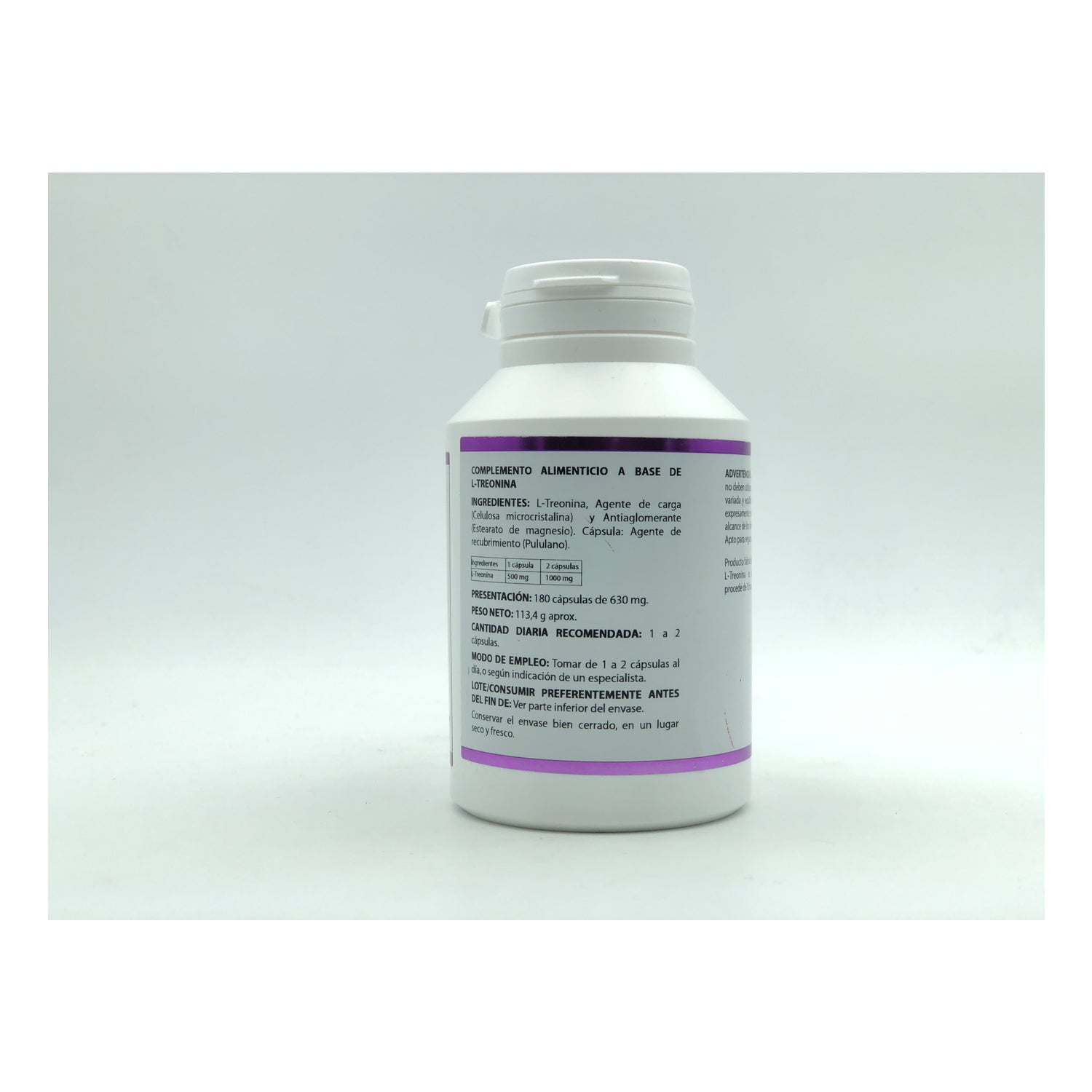 Suplemento alimentar à base de L-treonina que contribui para a formação de proteínas, colágeno, elastina e esmalte dentário. É necessário para a produção de neurotransmissores e, portanto, para a saúde do sistema nervoso. Formulado com L-treonina que ajuda a metabolizar as gorduras e a melhorar a síntese de colágeno natural. Intervém no ciclo de formação de elastina e ajuda na formação de elastina. Contribui para aumentar a produção de enzimas digestivas e regular o sistema nervoso. Os suplementos alimentares não devem ser utilizados como substitutos de uma dieta variada e equilibrada. Não exceder a dose diária recomendada. Manter fora do alcance das crianças mais pequenas. 50 cápsulas de 630 mg.