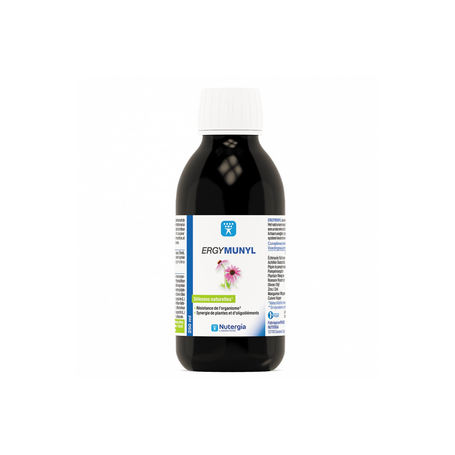 Nutergia Ergymunyl 250ml é um suplemento alimentar à base de plantas e oligoelementos que ajudam a reforçar a imunidade. A equinácea, a banana-da-terra e o alecrim contribuem para a defesa do organismo e são associados ao extrato de sementes de toranja. A fórmula é completada com cobre e zinco para reforçar o sistema imunitário. Além disso, a banana-da-terra, a equinácea, o mil-folhas e a oliveira actuam sobre as vias respiratórias. Não recomendado para crianças, mulheres grávidas ou a amamentar, ou em caso de alergia às Asteraceae. Não contém álcool, açúcar, edulcorantes, aromas artificiais ou resíduos de pesticidas. Fabricado em França. Os suplementos alimentares nunca devem substituir uma dieta saudável, variada e equilibrada e um estilo de vida saudável.