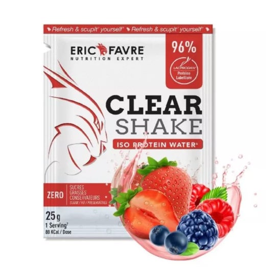 Eric Favre Clear Shake Frutos Vermelhos 25g é uma bebida proteica leve e refrescante. A bebida Clear Shake Frutos Vermelhos é um isolado de proteínas com sabor a frutos vermelhos que contribui para a recuperação muscular após o esforço.