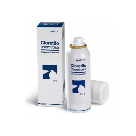 Chloroethyl Chemirosa Spray 200g é um spray para uso cutâneo que ajuda a atenuar e acalmar a dor através da acção localizada do frio. Quando a solução é pulverizada sobre a pele, produz uma forte diminuição da temperatura que funciona como um anestésico local (efeito crioanestésico local)